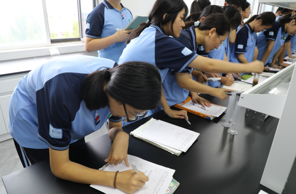 要想改良盐碱地,就要详细了解盐碱地的特点,在工作人员的指导下,学生们好奇地拿起试管里的两种土仔细观察,并通过过滤试验对比盐碱土与常规田园土两种土壤的过滤速度,随后通过pH试纸测定土壤酸碱度,在对比和观察中,学生们瞬间明白“为何盐碱地难种庄稼”。试验过程中,学生们分工明确、互相配合,仔细记录每一组数据,在亲手操作中深化了对盐碱土特性的科学认知,也感受到了科研工作的严谨性。