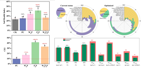 本研究选取西北旱作农业区典型中低肥力土壤(占比85%),开展了为期10年的田间定位试验,设置马铃薯连作(PC)、小麦/绿肥-马铃薯(WgP)、豌豆/绿肥-马铃薯(PgP)及小麦/绿肥-豌豆/绿肥-马铃薯(WgPgP)轮作模式。研究结果显示:土壤矿质氮、微生物量氮和速效磷是影响土壤健康指数的主要因素;与马铃薯连作相比,轮作通过改善土壤理化性质,土壤健康指数提高了6.5%-62.7%,进而提高了下茬马铃薯产量(15.0%-38.2%)、水分利用效率(19.5%-31.3%)、净经济效益(30.6%-41.9%)和净生态经济效益(14.8%-57.9%)。轮作通过提高土壤固碳量进而使GHG排放量降低了33.6%-59.3%。综合效益评估表明豌豆/绿肥-马铃薯为旱作农业区马铃薯最佳轮作模式;通过调整作物种植结构,每年可增产0.2%-41.6%,节约9.0万吨养分和16.5亿吨水分消耗,减少81.5万吨的GHG和8.0万吨的Nr排放,实现农户增收46.2%,生态效益提升68.5%,为区域农业可持续发展和实现农业碳中和提供了科学决策依据。