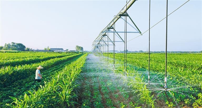 近日,山东省聊城市,农民使用喷灌设备为农作物进行水肥喷洒作业。张振祥摄(中经视觉)