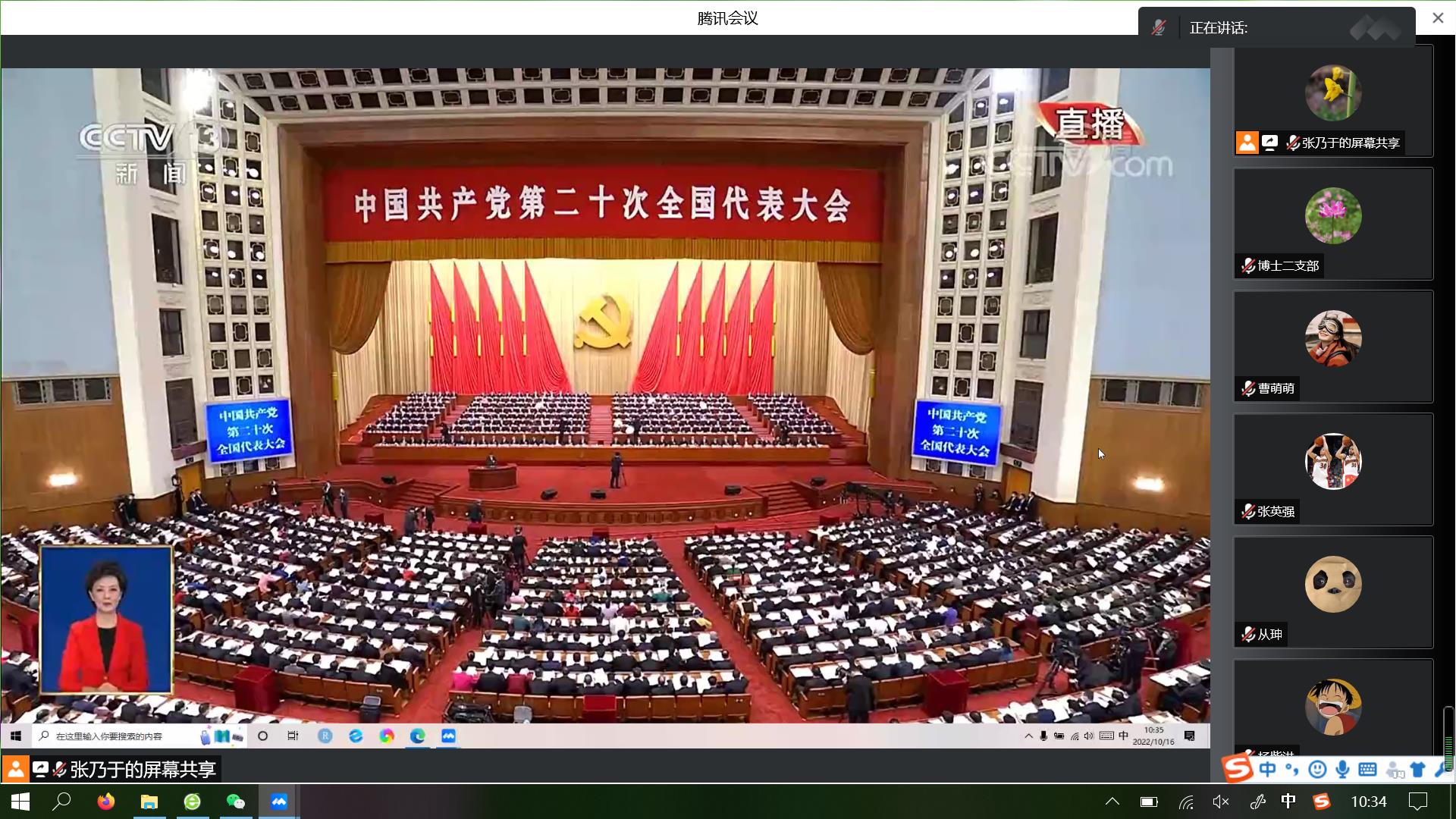 中国共产党第二十次全国代表大会于2022年10月16日在北京人民大会堂隆重召开,博士二支部组织支部全体党员线上收听收看大会开幕盛况,认真领会学习习近平总书记代表第十九届中央委员会所作的报告。大家纷纷表示,二十大报告振奋人心,报告中一组组数据折射出过去这十年的非凡成就,它不仅是当下的耀眼成绩,更是开启新征程的希望。二十大报告提出加快建设农业强国,农业强国被提升到了前所未有的高度,对于当前发展阶段有着非常重要的意义。未来,立足新的起点,农业科研人员将面临更加艰巨的任务和挑战。