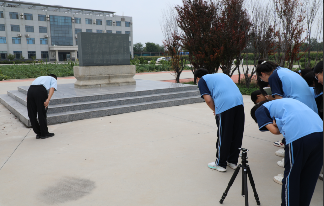 随后,由学生代表朗读纪念碑文,陵城一中老师代表刘红瑞则结合自身家乡因盐碱地改良而发生的变化,分享了“从‘种啥都难活’到‘年年丰收’”的真实经历,让学生们更直观地感受到盐碱地改良的民生价值。听完故事,学生们自发整理衣襟,向王守纯老先生深鞠一躬,以最诚挚的敬意,传承这份“扎根一线、改土沃田”的科学情怀。