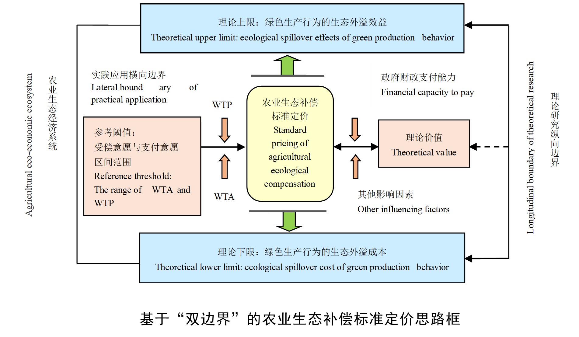 本研究综合运用规范分析及归纳和演绎法,重新定位以绿色发展为导向的农业生态补偿政策边界,系统划分农业生态补偿的类型与内容,尝试构建以外部效应测度为重点的定价机制,科学回答农业生态补偿“为什么补”及“补什么”等核心问题。一是在理论上,界定绿色发展驱动下农业生产补偿外部性政策边界,划分并确定农业生态补偿的类型与内容;二是在方法上,提出基于外部性双边界视角的定价思路,探明不同类型补偿标准核算依据。研究提出基于外部性“双边界”视角的农业生态补偿标准定价思路,为农业生态补偿标准定价提供了重要的思路和方法依据。