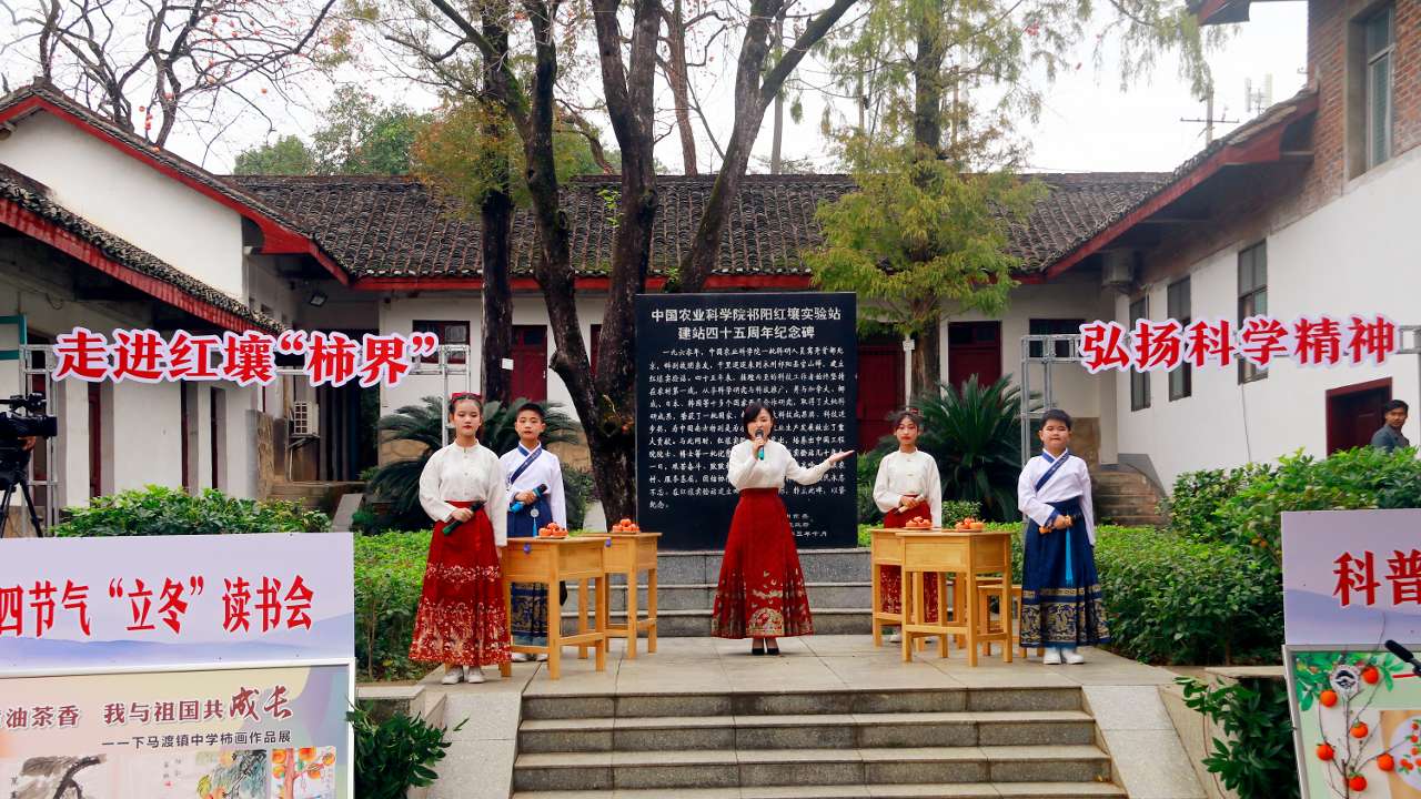 冬之伊始,霜染万物。11月6日,“走进红壤‘柿’界 弘扬科学精神”湖南祁阳市中小学“爱·悦·读”二十四节气“立冬”读书会暨科普“双走进”示范县启动仪式在中国农业科学院湖南祁阳红壤实验站举办。