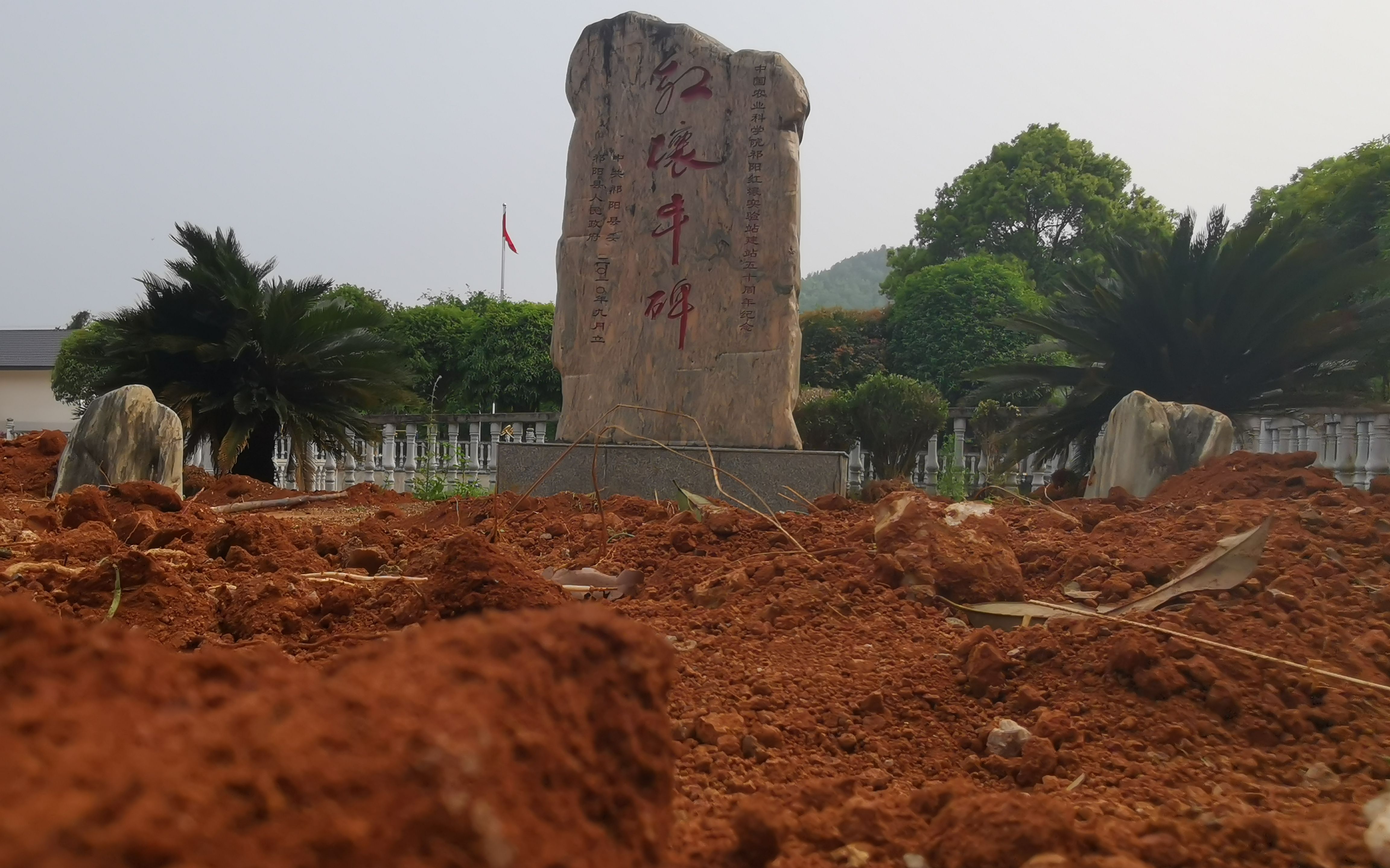 2021年4月2日,湖南祁阳红壤实验站中矗立的石碑,石碑是十年前,祁阳站建站50周年时,当地为他们竖立的。新京报记者 周怀宗 摄