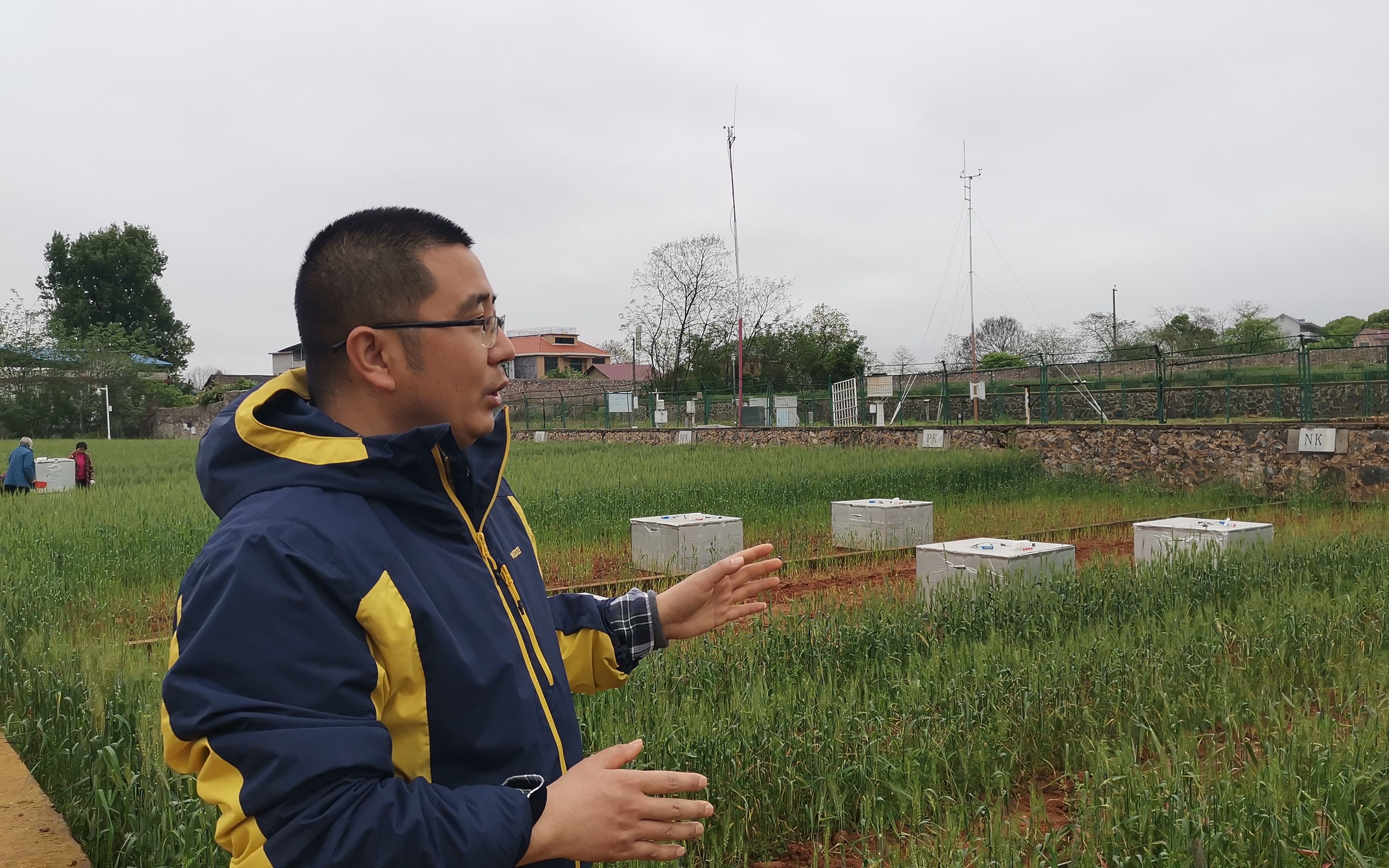 这片试验田,是红壤站的一处“明星”试验田,图为中国农科院副研究员蔡泽江为记者讲解试验田的故事。新京报记者 周怀宗 摄