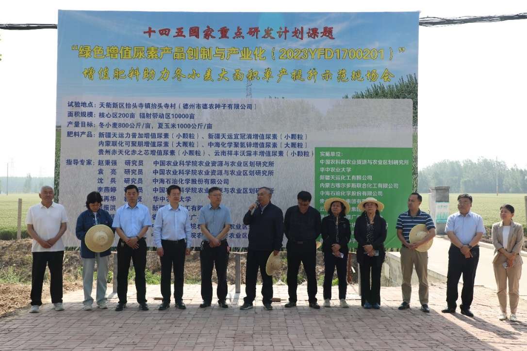 2025年5月19日,“十四五”国家重点研发计划课题“绿色增值尿素产品创制与产业化”绿色增值肥料助力冬小麦大面积单产提升示范现场会在山东省德州市德农种子有限公司农场顺利召开。