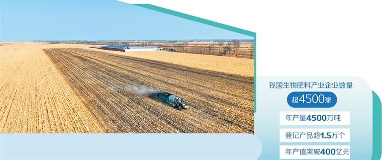 中国农业科学院农业资源与农业区划研究所研究员李俊介绍,我国生物肥料产业规模持续扩大,企业数量已超4500家,年产量达4500万吨,登记产品超1.5万个,年产值突破400亿元。