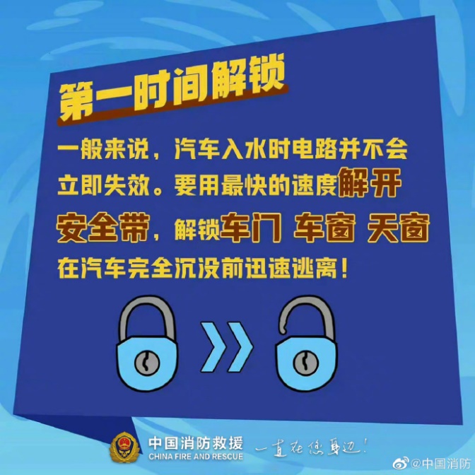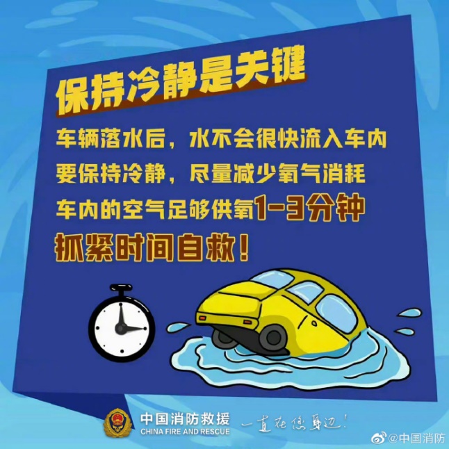 当车辆不慎落水,该如何逃生自救?正确的逃生方法很重要,掌握这些自救知识,关键时刻会救命,记得转存!