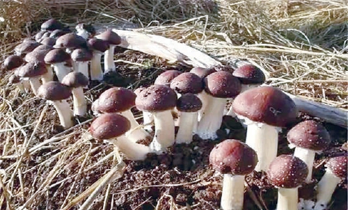 通过秸秆基料化利用稻田轮作生长的大球盖菇。  资料图