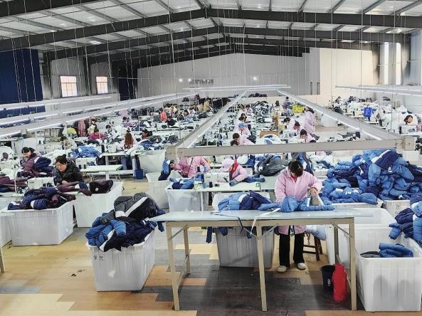 “记者:咱们是怎么想到把这个厂子搬到这里来?张彦妮:因为这个地方空间大,周边的人也多,好招工一点。记者:搬过来也带动了周围的老百姓(就业)。张彦妮:对,都是村里面的人,也方便照顾孩子嘛。”