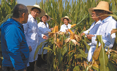 今年秋季,中国农科院植物营养团队在河南省获嘉县查看玉米生长情况。中国农科院供图