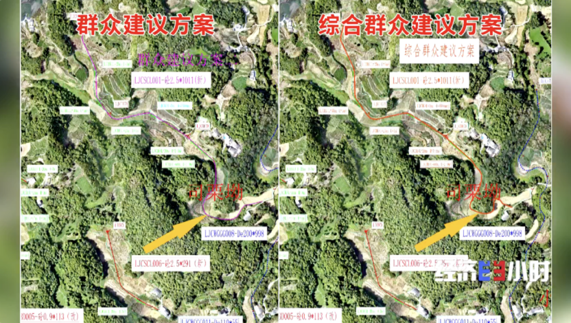 赵中兰的诉求很明确,希望新路线更靠近她家的田块,这样她搬运稻谷能省力,小型收割机也更容易下田。但如果按照赵中兰的建议,机耕道的建设成本会大大提高。最终他们想出了一个折中的优化方案。经过几次协商,赵中兰对最终方案感到非常满意。