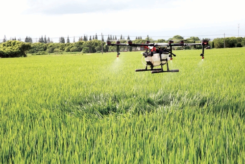在浙江省平湖市,农业植保无人机正在开展作业。 潘秋波 摄