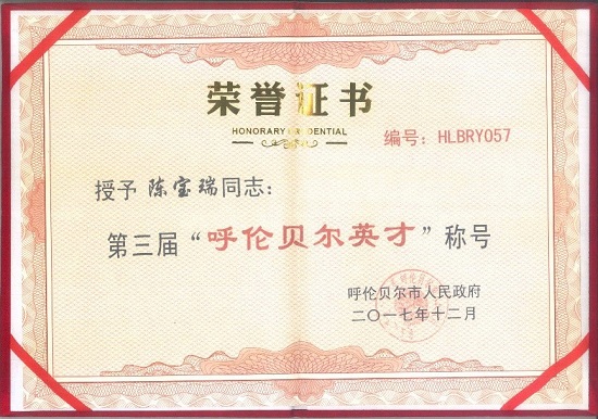 陈宝瑞博士荣获“呼伦贝尔英才”荣誉称号