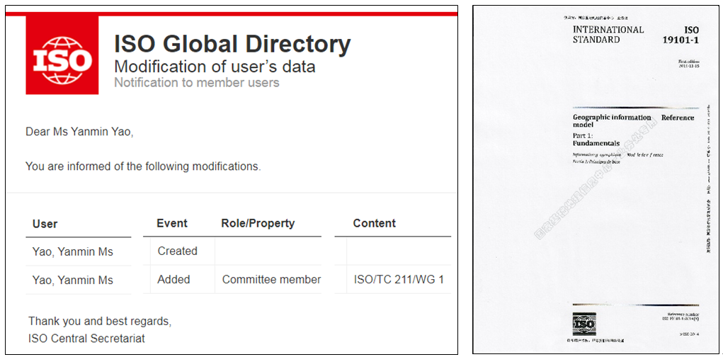 近期接ISO Central Secretariat邮件通知,经国家标准化管理委员会推荐,我所姚艳敏研究员增补为ISO委员会成员,加入国际标准化组织地理信息标准化技术委员会体系框架和参考模型工作组(ISO/TC 211/WG1),参与地理信息国际标准“ISO 19101-1:2014 Geographic information - Reference model - Part 1: Fundamentals地理信息·参考模型·第1部分:基础”的修订工作。