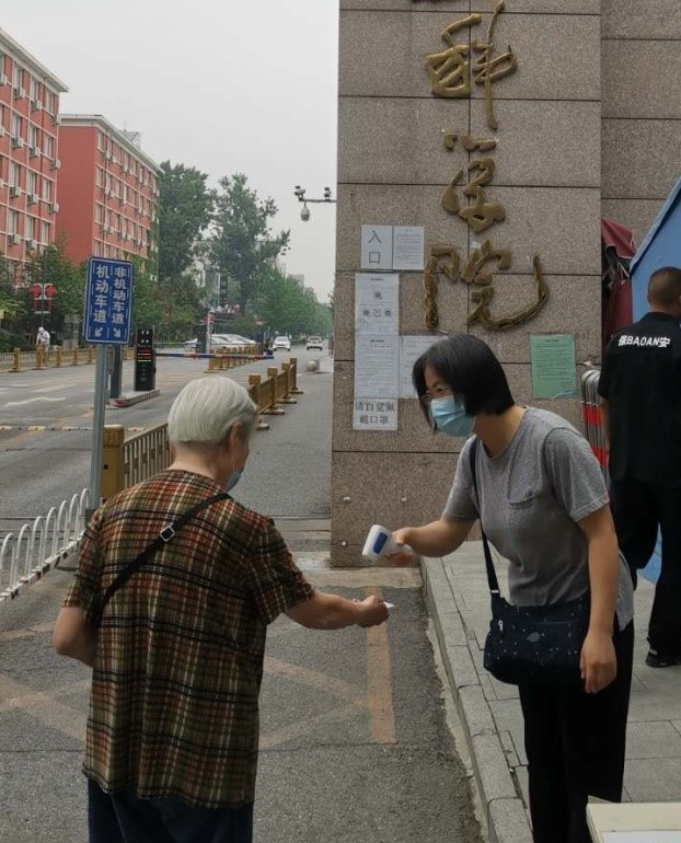 7月17日清晨,王秀芬提前半小时到达南门上岗,“孩子啊,看着你不像是保安师傅啊”,一位老奶奶热情地问。“总书记说了,医院和社区都是抗击疫情的阵地,我在院里上班,这也是我的‘家’,我们一起为您做好服务”,王秀芬笑着对老人说。