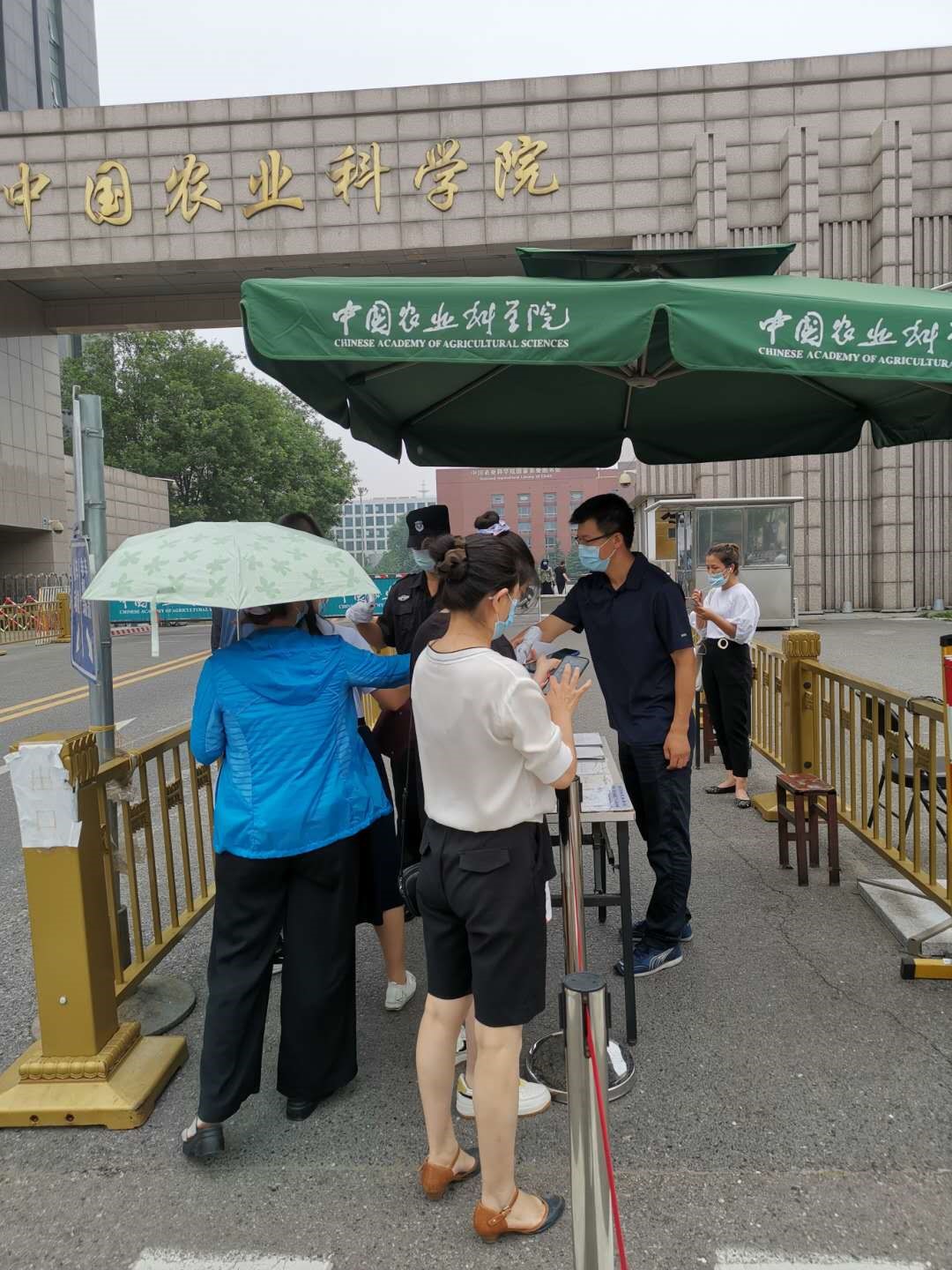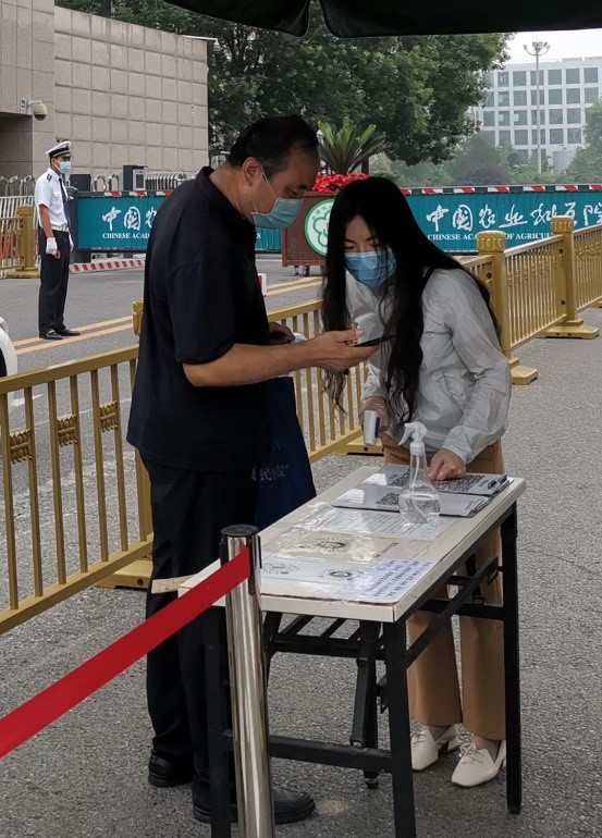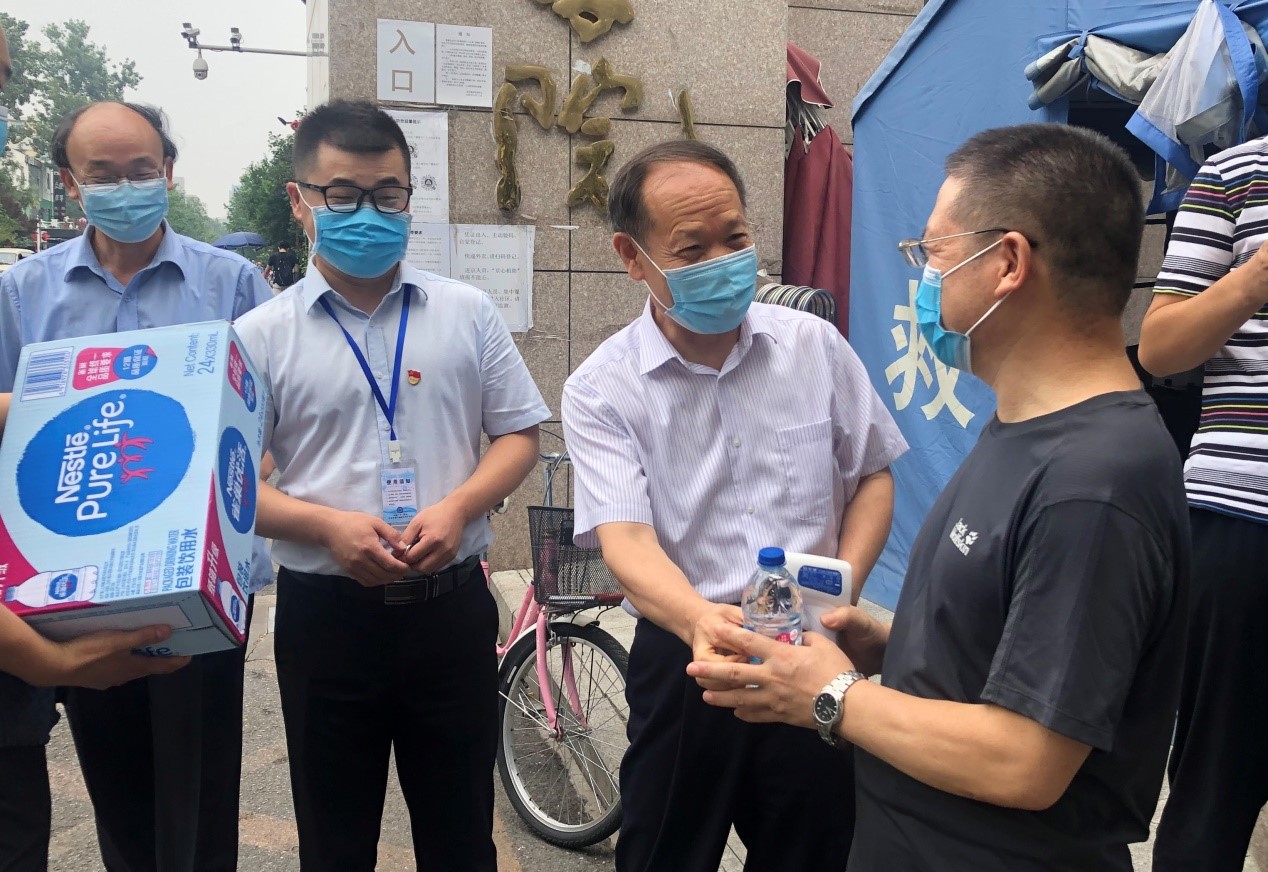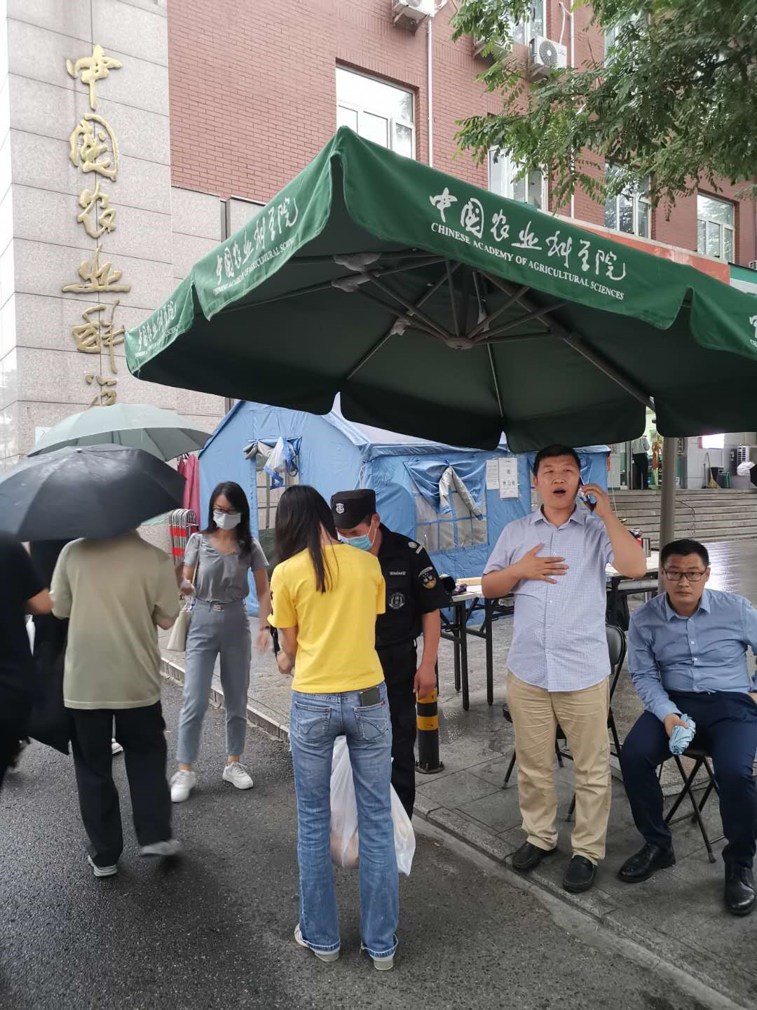 “姜老师,入伏天气热,您辛苦啦!”“周老师,快喝口水吧”,所党委书记郭同军、副书记李文才专程带着矿泉水来到西门、南门看望,“咱们这个主题党日活动搞得好!咱们的科学家们不仅科研工作顶呱呱,在疫情防控阻击战中发挥先锋模范作用同样走在前、做表率”,温暖的慰问让农业科学家们红扑扑的脸上洋溢着幸福的微笑。