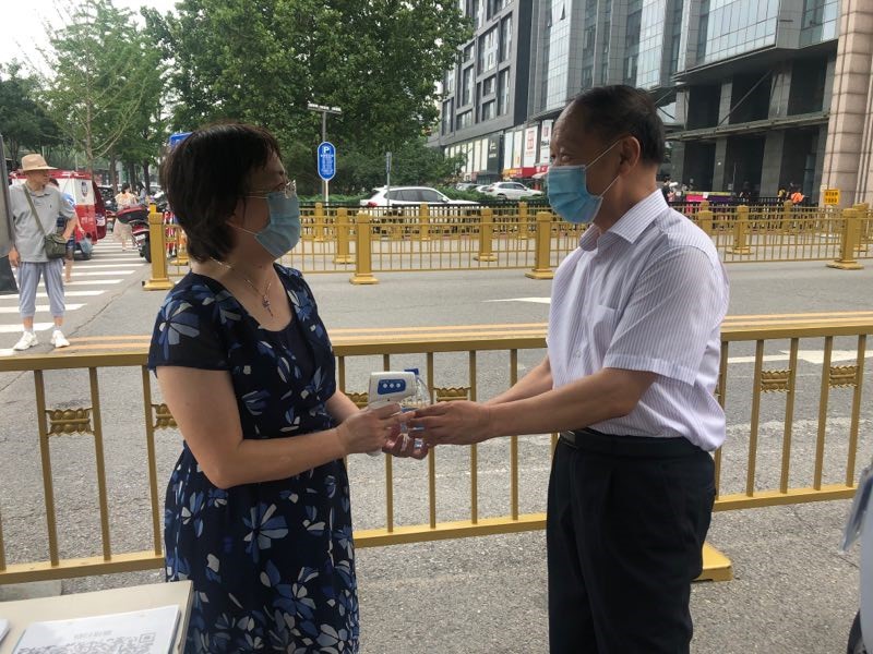 家住南四环的肖琴生怕误了第一班岗,早晨5点多就从家里出发,提前抵达西门和保安师傅汇合。“现在是早高峰,没有机会喝水,放心吧!没事的”,肖琴笑着向来送矿泉水的同事道谢。