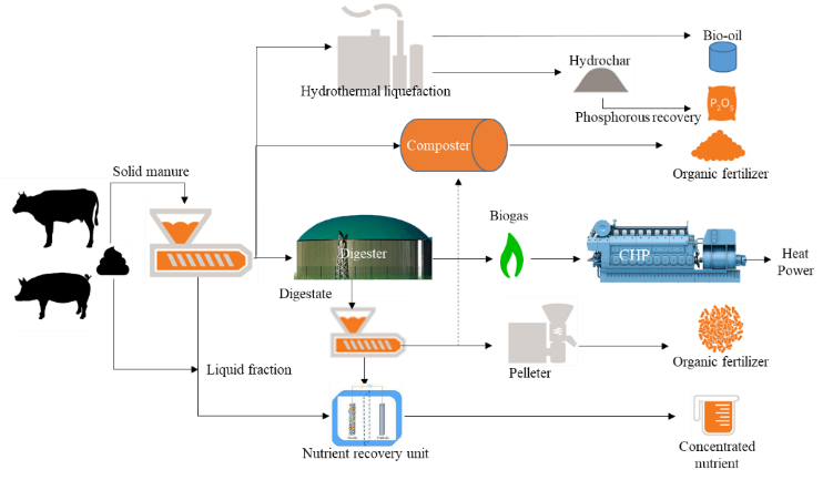 图2 畜禽粪污综合利用(高附加值产品、能源和有机肥料)路线图