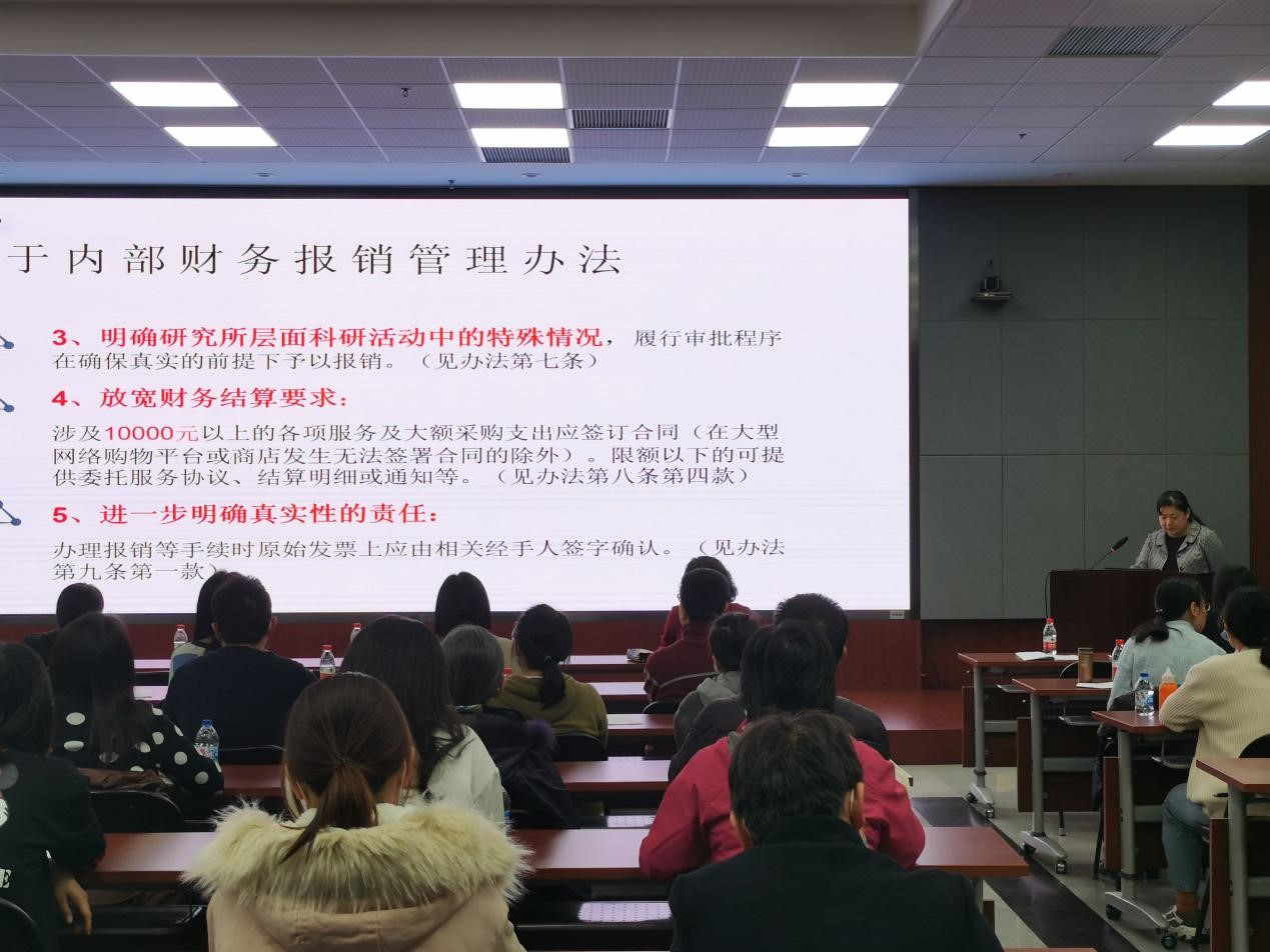 为进一步落实中央各项“放管服”措施,不断健全和完善研究所财务和资产管理,帮助广大科研人员和科研财务助理更好了解和把握政策,11月25日,中国农业科学院农业资源与农业区划研究所财务资产处在区划楼报告厅举办2020年财务和资产管理培训班,全所在职职工和财务助理共计90余人参加了培训。王秀芳副所长出席培训会,并结合李宁案做了“扎实做好财务工作,为科技创新保驾护航”的主题报告,分析了当前科技经费管理面临的新形势,以李宁案为鉴,警示大家一定要坚守公私分明的底线,坚决不碰高压线,还对“放管服”背景下如何做好财务工作提出了具体要求。