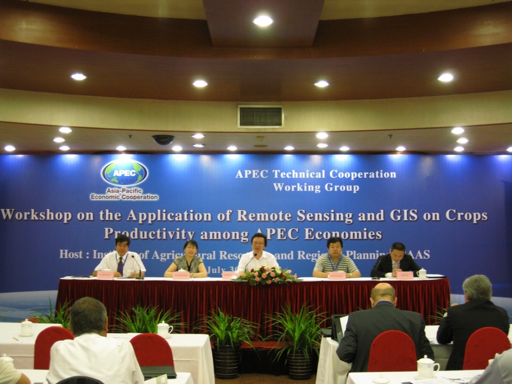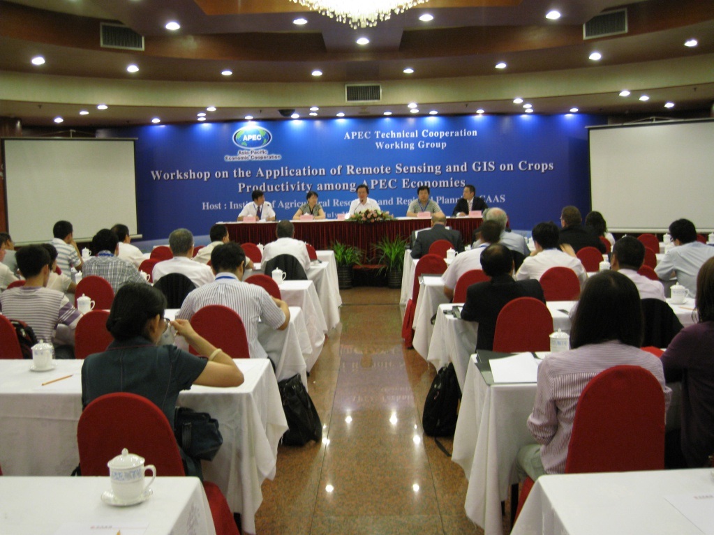 2012年7月30-31日,“APEC(亚太经济合作组织)成员体遥感与GIS技术在作物生产能力中的应用研讨会”在北京召开,会议旨在加强APEC成员体遥感与GIS技术在农业研究领域的交流,促进粮食安全和应对气候变化的措施与技术合作。会议由亚太经济合作组织 (APEC)基金和国家自然科学基金青年基金“基于综合模型的区域粮食作物空间竞争机制及模拟研究”项目共同资助、农业资源与农业区划研究所主办。