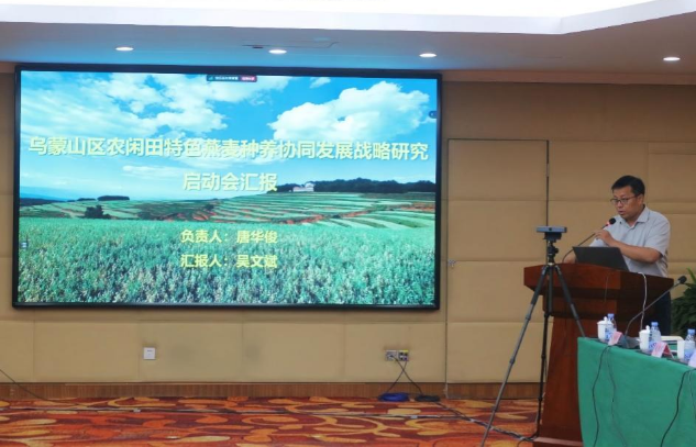 中国农业科学院农业资源与农业区划研究所所长吴文斌代表项目组作了“乌蒙山区农闲田燕麦产业种养协同发展战略研究”项目实施方案汇报。项目主要围绕乌蒙山区高寒冷凉山区农闲田资源,推广“会泽燕麦模式”;推动燕麦产业深加工与草食畜牧业种养结合的“双轨发展”,夯实燕麦产业高质量发展基础;服务县域经济,满足科技赋能的产业提速需求,提出实现三产融合、乡村振兴的新路径和新举措。