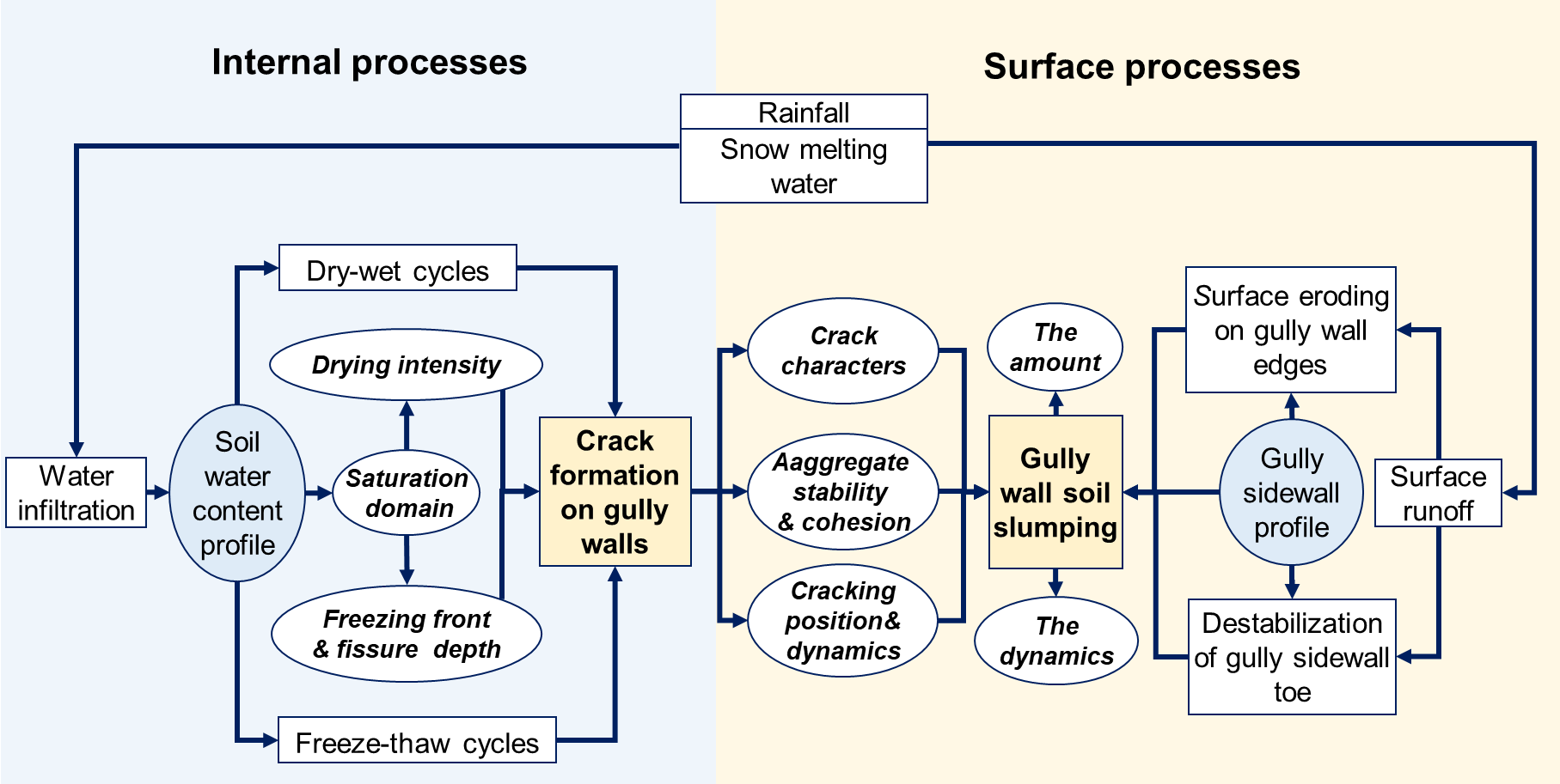 Yanru Wen, Heng Jiang, Till Kasielke, Harald Zepp, Yang Yang, Wenbin Wu, Bin Zhang*. Prewinter soil water regime affects the post-winter cracking position on gully sidewall and slumping soil dynamics in Northeast China. Geoderma, 2023, 435, 116508.