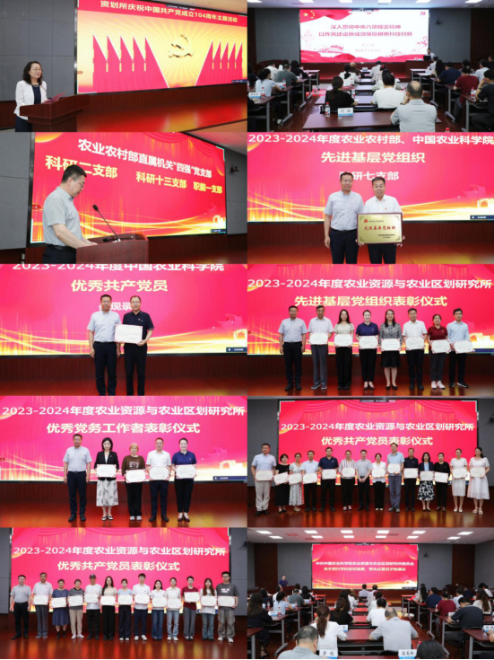 7月3日,资划所举办庆祝中国共产党成立104周年主题活动,表彰研究所先进集体和个人,所长吴文斌讲授深入贯彻中央八项规定精神专题党课。活动采取线上线下相结合的方式举行,所班子成员、党委委员、纪委委员、团队首席、部门负责人、副处级以上干部、支部书记、支部委员、“两优一先”代表近90人现场参会,其他党员干部300余人在线参加。活动由党委书记王秀芳主持。